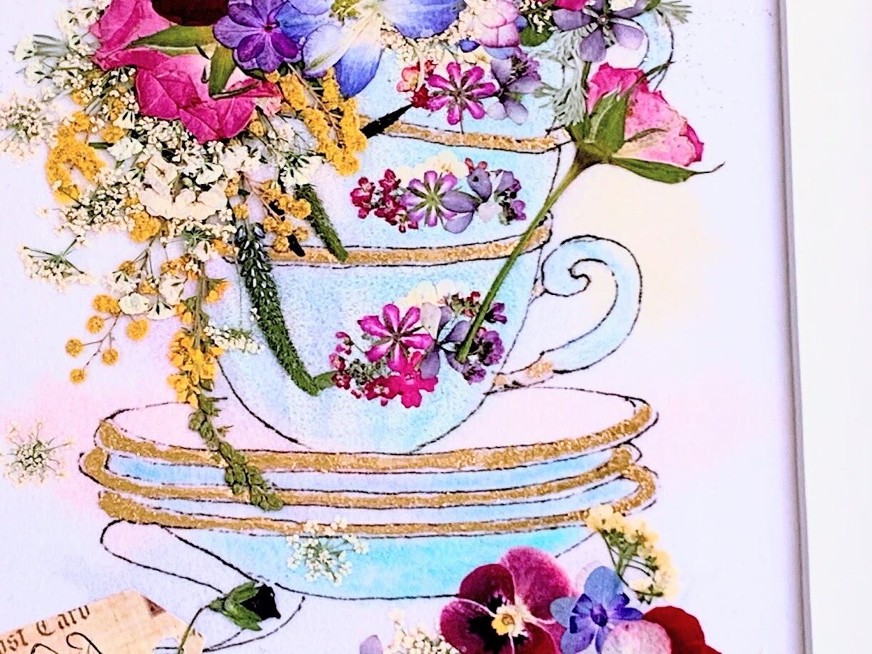 お花のティーカップで、午後はゆっくりしませんか? 押し花アート額