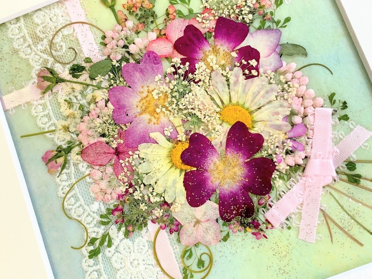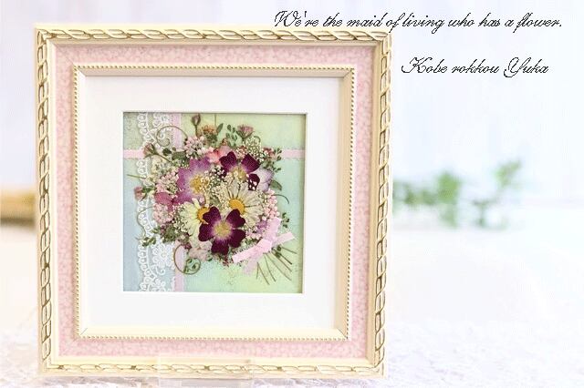 淡いピンクのギフト押し花額 11