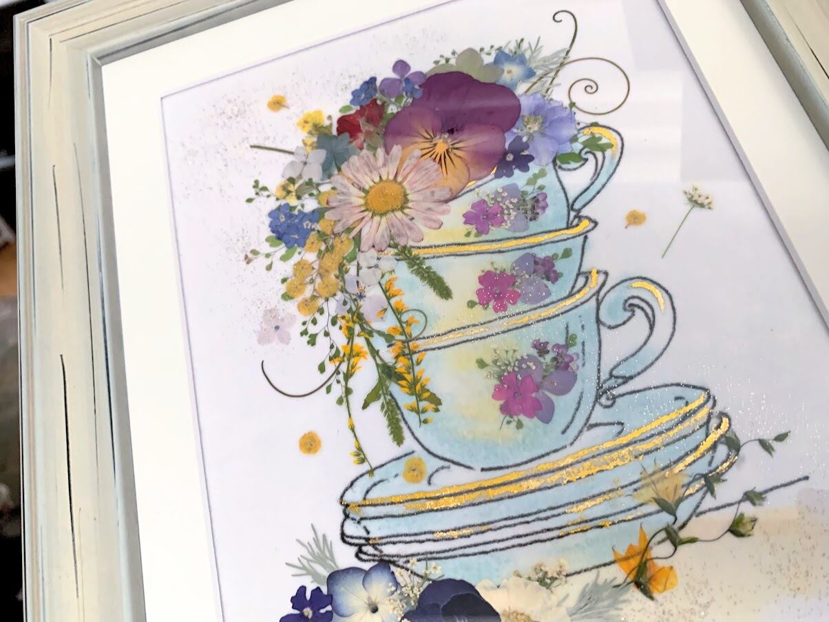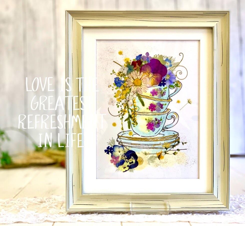 お花のティーカップで、午後はゆっくりしませんか? 押し花アート額02