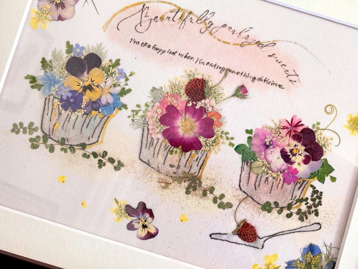 アンティーク風 押し花カップケーキで午後のティータイムを!押し花アート額02