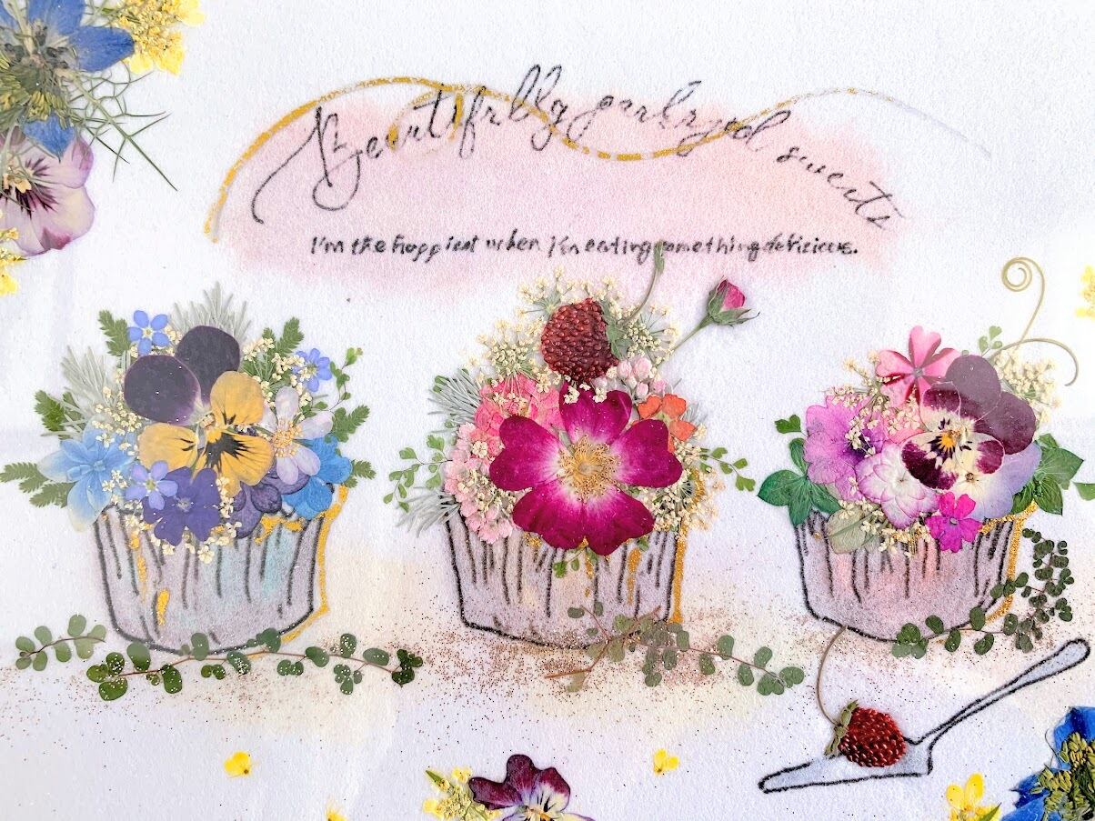 かわいい押し花がぎゅっと!詰まったカップケーキです。