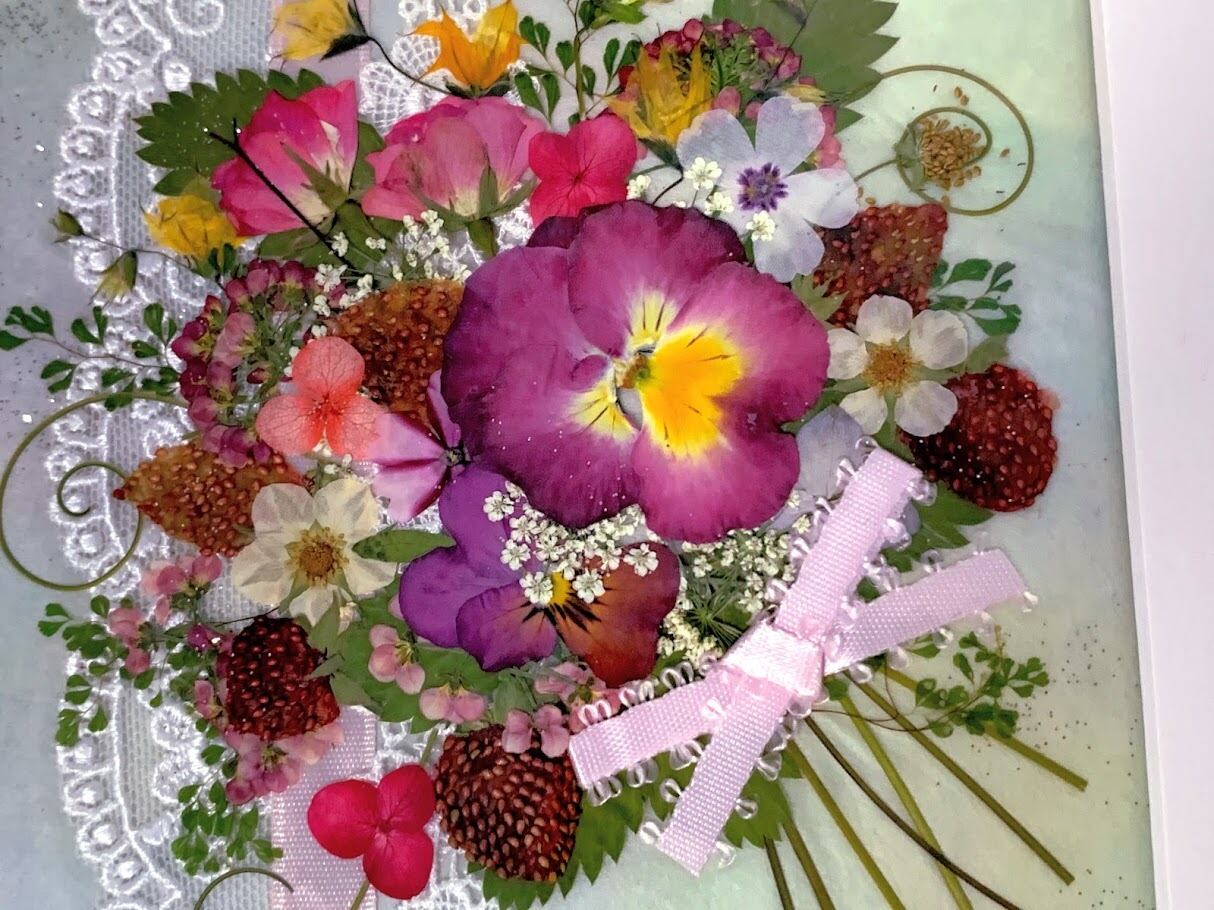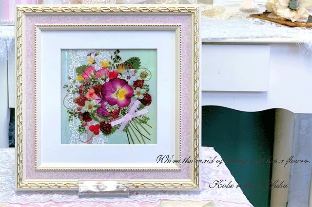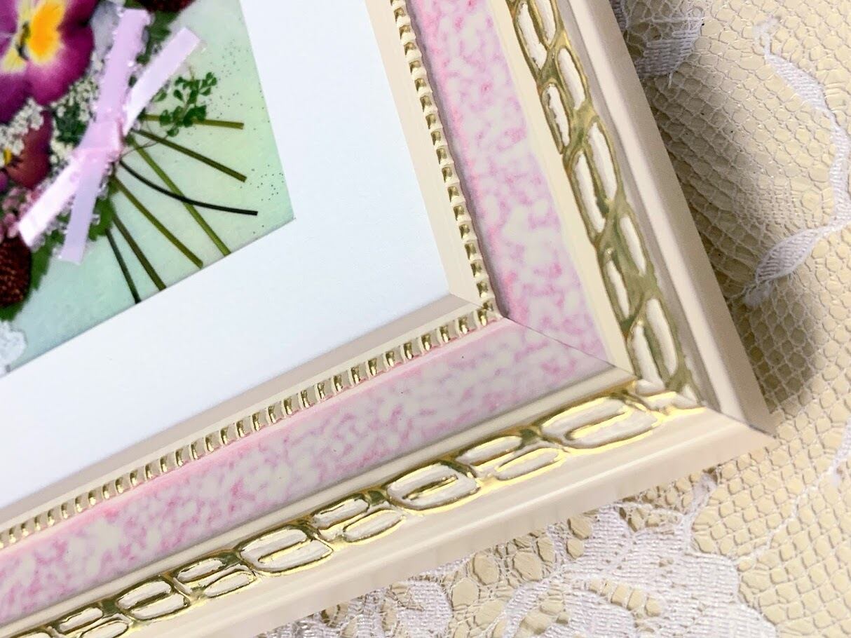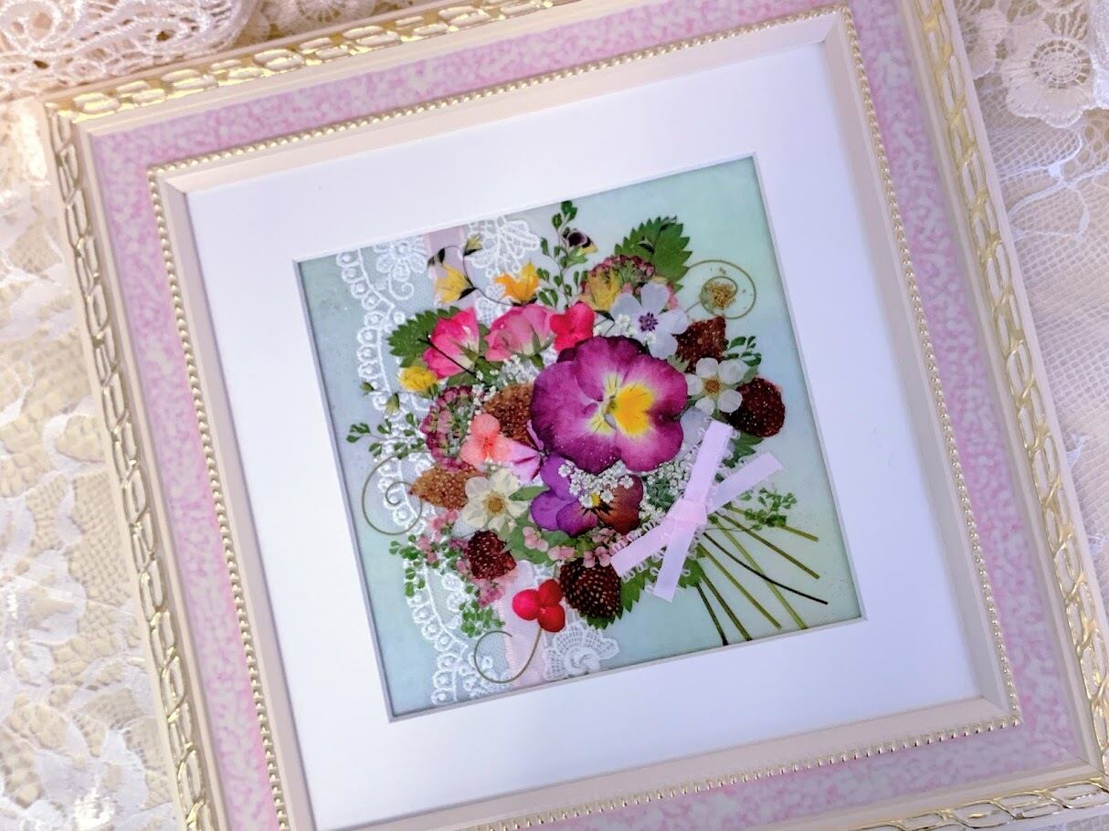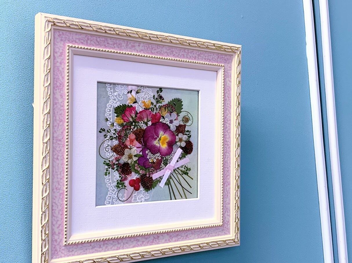 ギフトにもピッタリ!甘いピンクの花束 押し花アート額