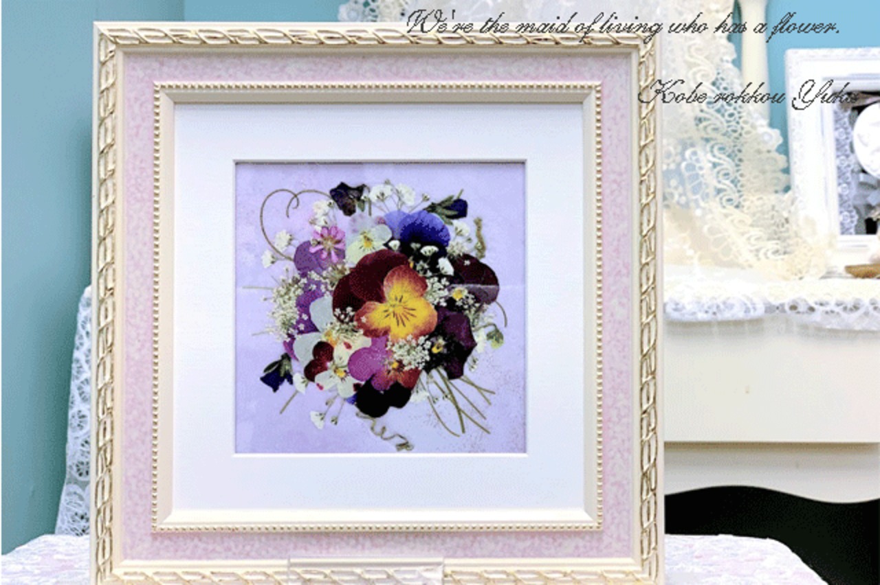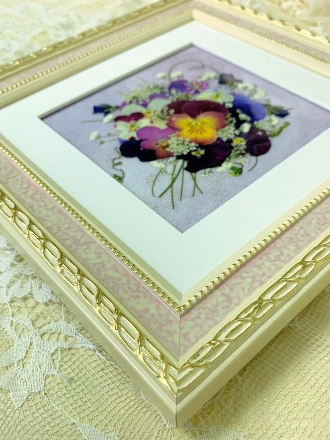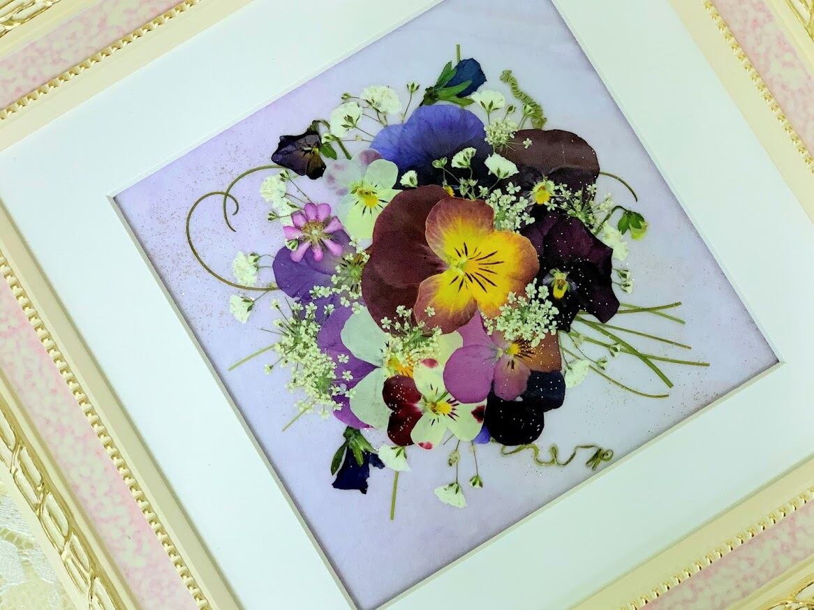 「母の日」ギフトにぴったり!春色ビオラと甘いピンクな押し花アート額