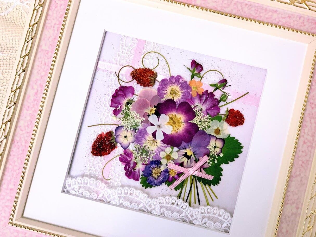 「母の日」ギフトにぴったり!ピンクの押し花アート額