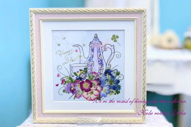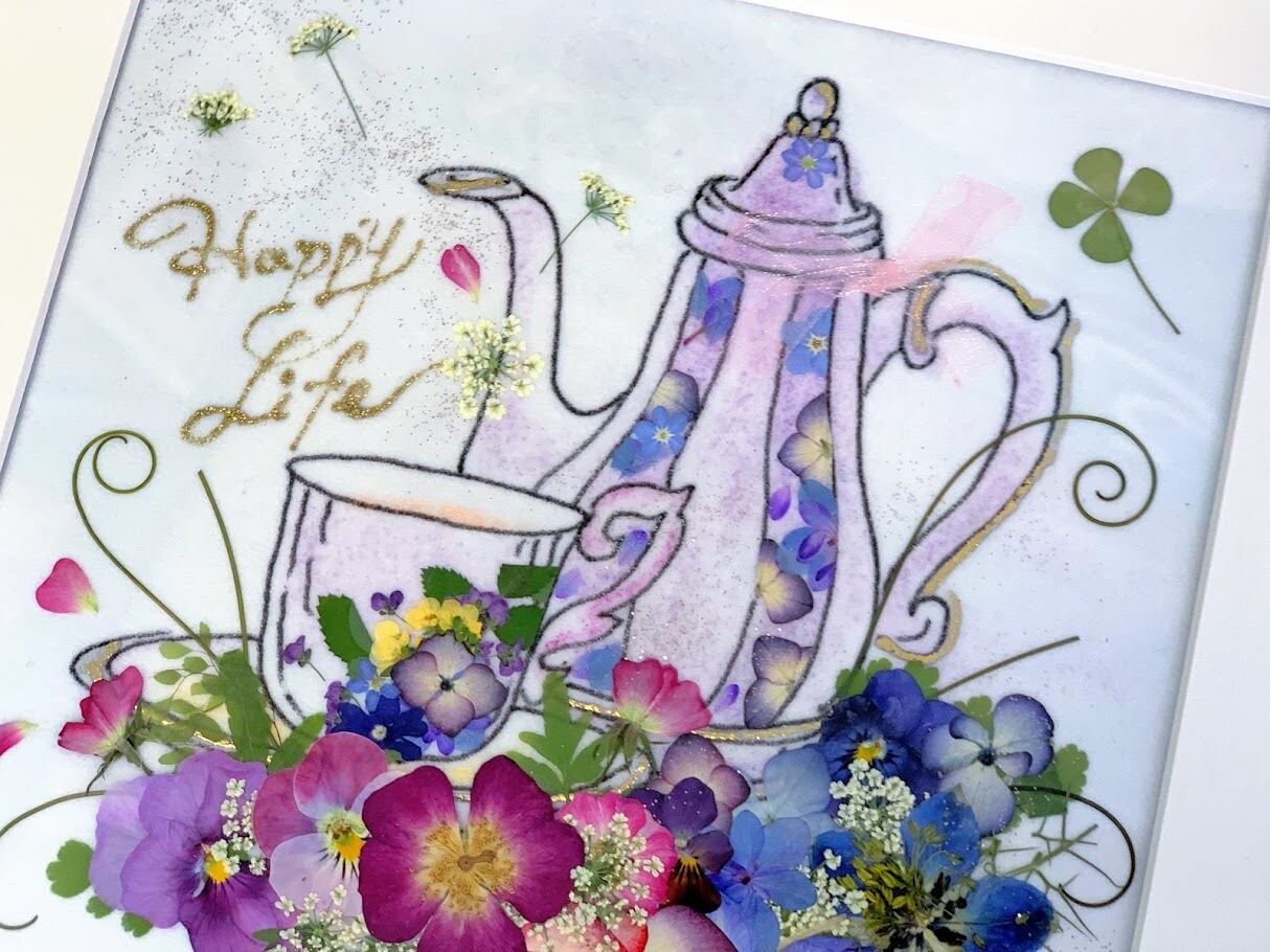 午後はゆっくり優しいピンクのティータイム 押し花アート額