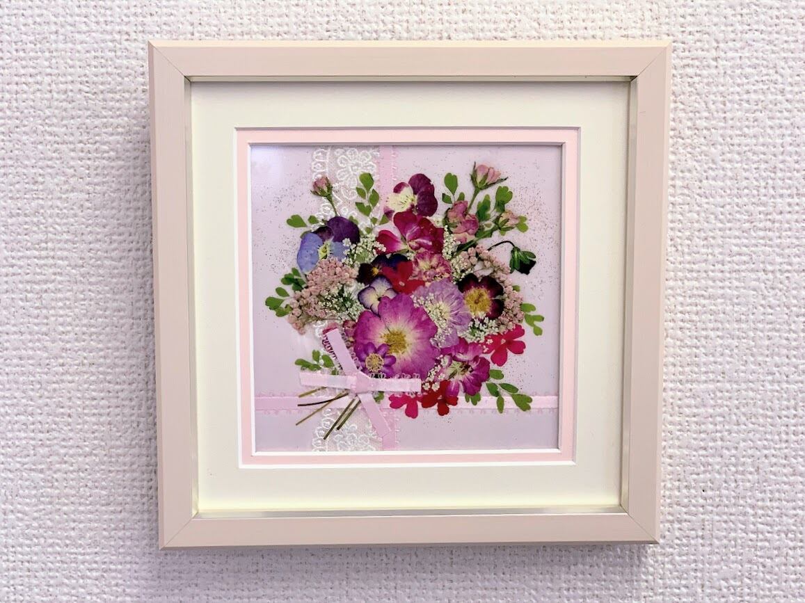 母の日ギフトにもピッタリ! 淡いピンクのミニ薔薇花束 押し花アート額