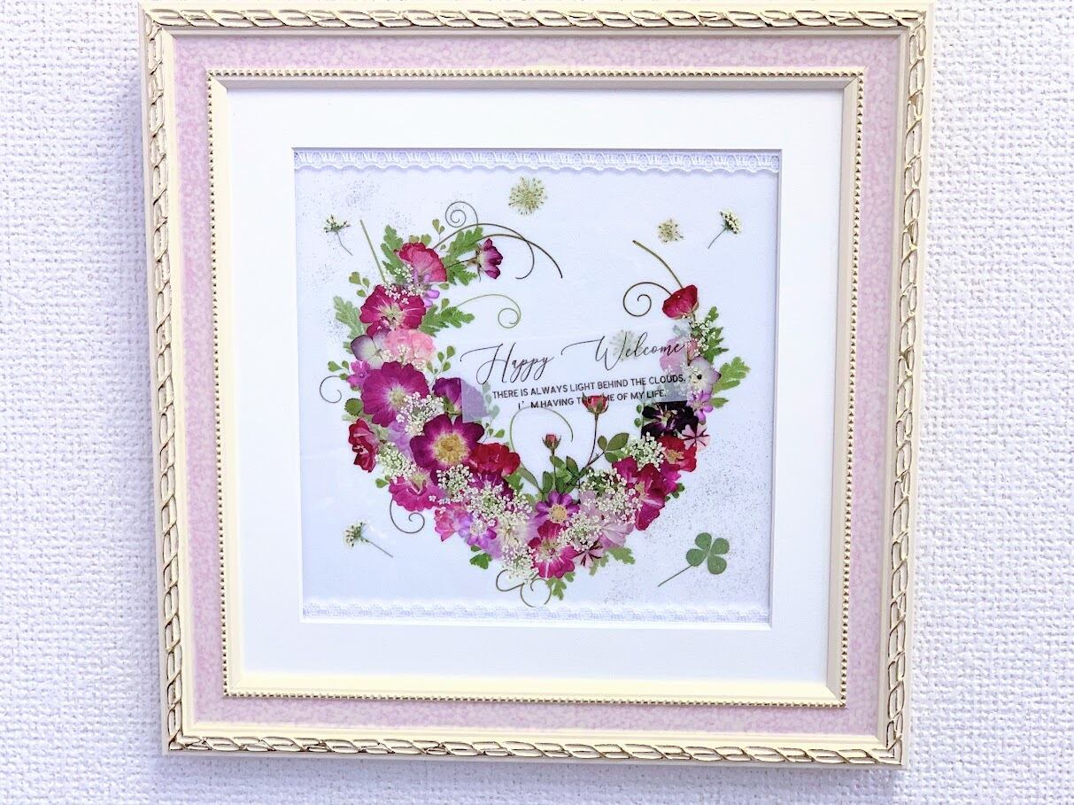 「母の日」やインテリアにもピッタリ!おしゃれなハートリース押し花額02