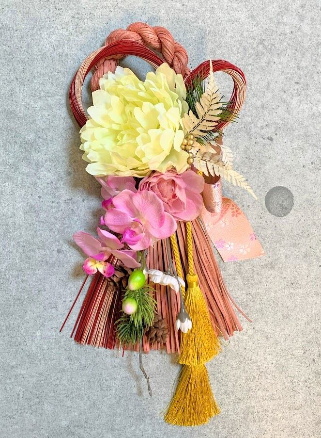 迎春応援価格! お正月を飾る落ち着いたモーブピンクのしめ縄飾り